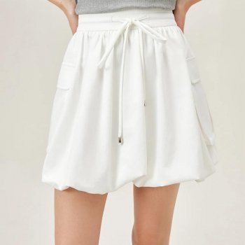 Spring Cotton Washed Corduroy Lantern Skirt with Pockets